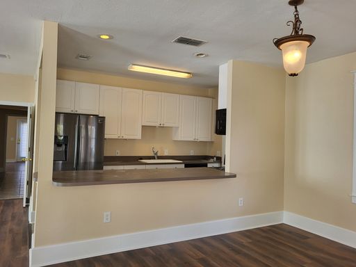 Great downtown location on a one-way street running South. Features include central heat/ac, galley kitchen with new refrigerator/new range/dishwasher/new microwave/disposal, new vinyl flooring (no carpeting), new interior paint, washer/dryer hook-ups, mini blinds, open front porch, shared driveway with parking in the rear, lawn care & indoor pest control included, Owner prefers no pets, appliances covered under American Home Shield, tenant pays for all service calls $75.00 each, the American Home Shield may also include coverage for tenants washer & dryer.