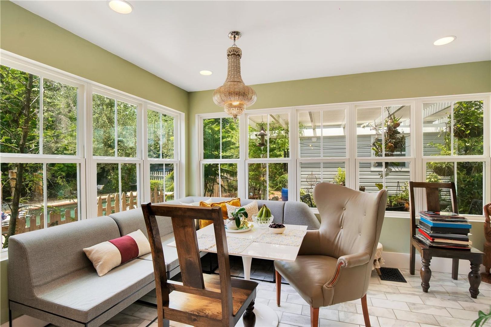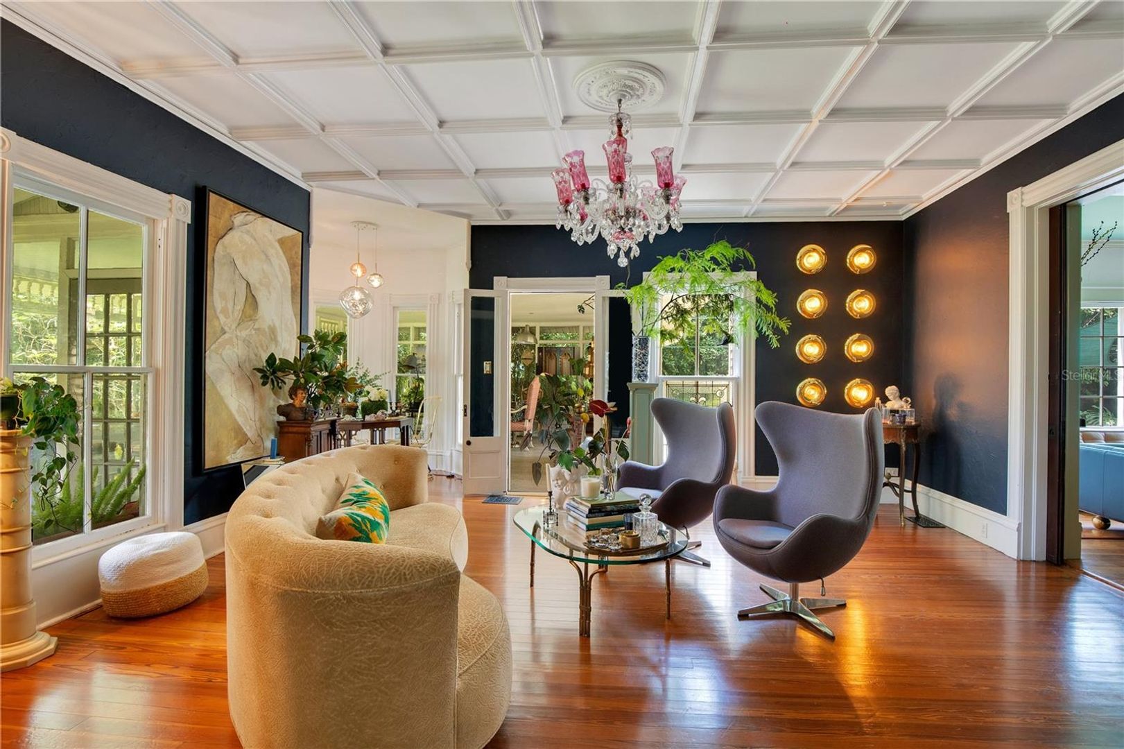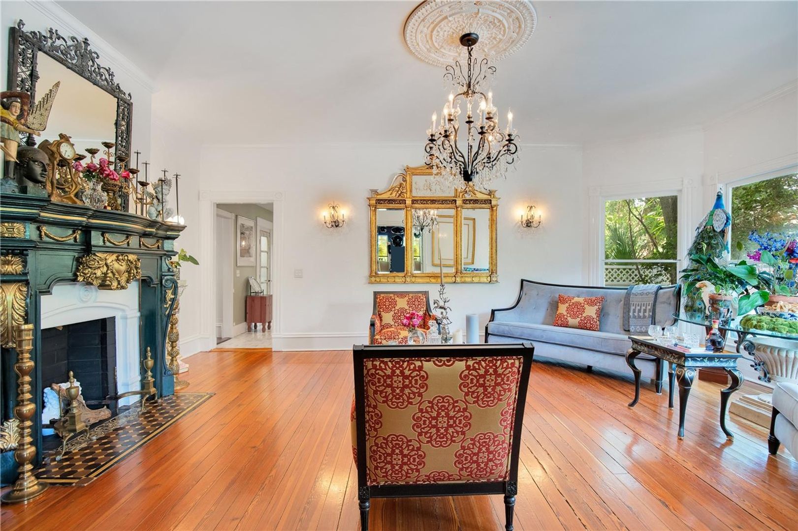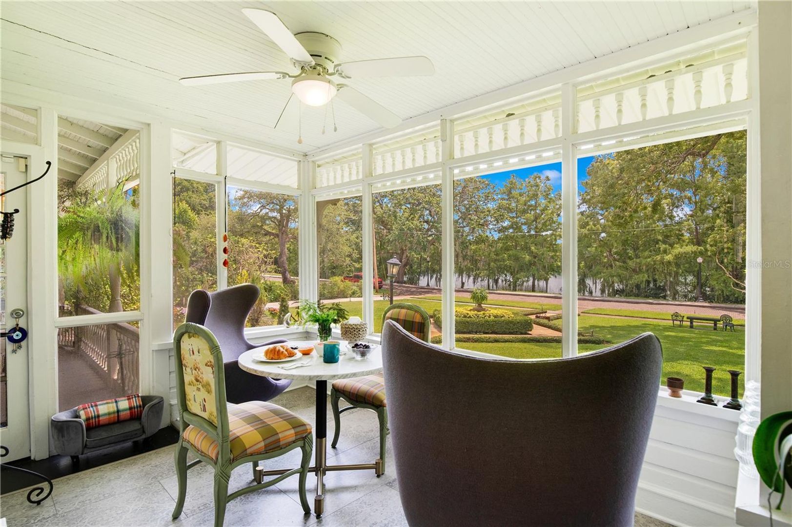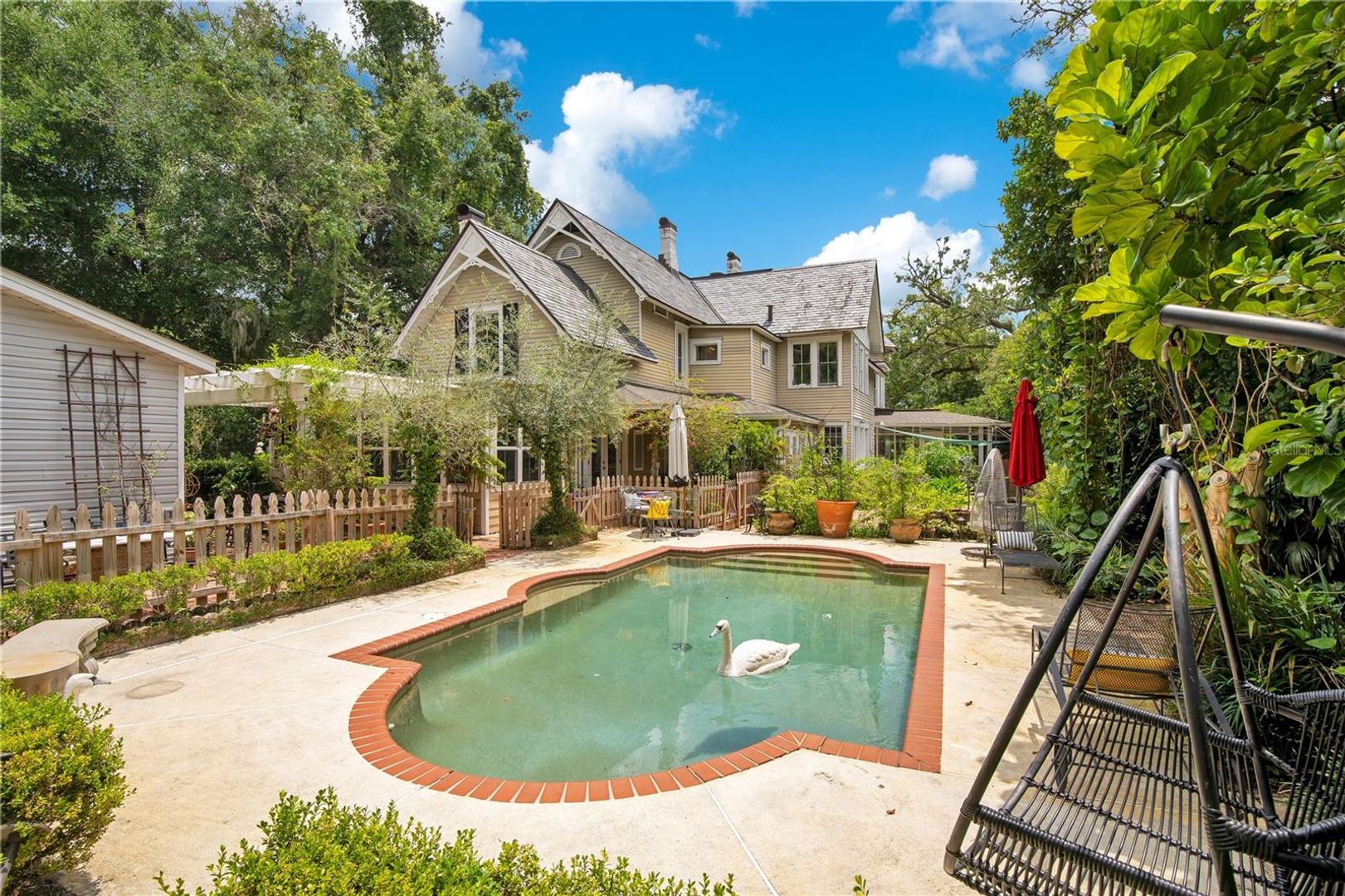 Positioned on one of the largest residential lots in Downtown Orlando and overlooking Lake Cherokee, this 1884 Queen Anne Victorian is a rare opportunity to own one of the city’s true architectural landmarks. Located along iconic Historic Honeymoon Row, the home blends preserved period detail with thoughtful modern updates, offering timeless character without sacrificing livability. The 5-bedroom main residence features 4 full baths and 2 powder rooms, soaring ceilings, restored hardwood floors, original millwork, stained-glass accents, and eight decorative fireplaces. Expansive formal living and dining spaces create an elegant setting for entertaining, while oversized windows frame tranquil lake views throughout. The updated chef’s kitchen includes premium appliances, custom cabinetry, and soapstone countertops, designed to complement the home’s historic integrity while delivering modern performance. A sunlit Florida room overlooks the water, and a private library and multiple flex spaces provide versatility for office, studio, or additional living areas. Upstairs, the primary suite captures sweeping views of Lake Cherokee and includes a spacious bath with a soaking tub and dual vanities. An original (non-operational) elevator remains as a preserved historic feature. A detached, fully renovated 1-bedroom guest house offers ideal accommodations for extended family, visitors, or a private workspace. Outdoors, the estate-like grounds include a saltwater pool, mature canopy trees, winding garden pathways, and a stocked koi pond, creating a private retreat just minutes from the heart of downtown. Close in proximity to Lake Eola Park and minutes from the Dr. Phillips Center for the Performing Arts, this property offers a unique blend of history, location, and scale rarely available in Central Florida. A once-in-a-generation offering for buyers seeking architectural significance, lakefront views, and Downtown proximity, all in one irreplaceable address.